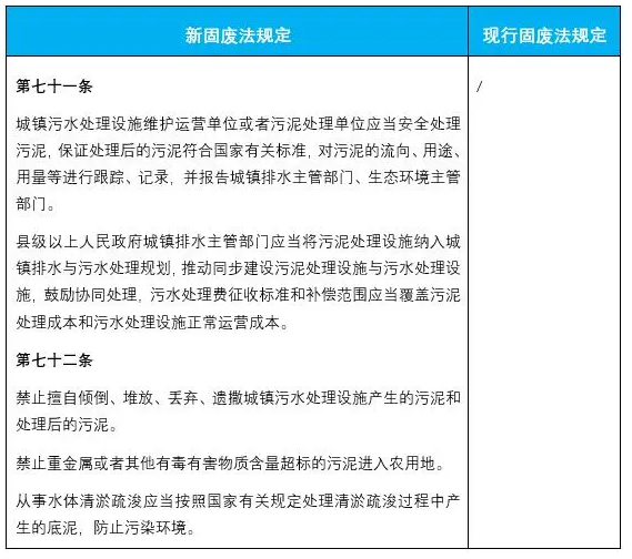 2.新增了城鎮(zhèn)污水處理設(shè)施維護(hù)運(yùn)營(yíng)單位和污泥處理單位對(duì)污泥處理的義務(wù)