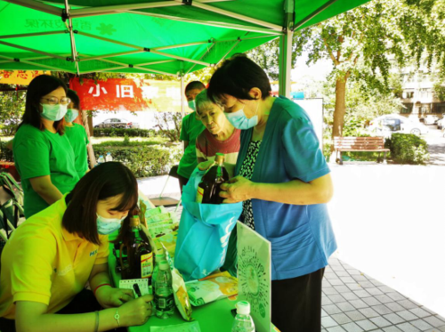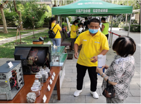 在北再生集團的攤點,居民用廢舊電器即可換取兌換券,再憑券換取米面油等生活用品。工作人員還提供免費回收大件垃圾服務、幫助社區(qū)清理“僵尸自行車”,贏得了居民點贊~